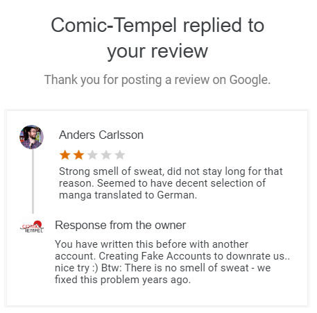 That feeling when @ComicTempel accuses you of being a fake account due to them not liking the review.pic.twitter.com/DdaDwo8oMP
