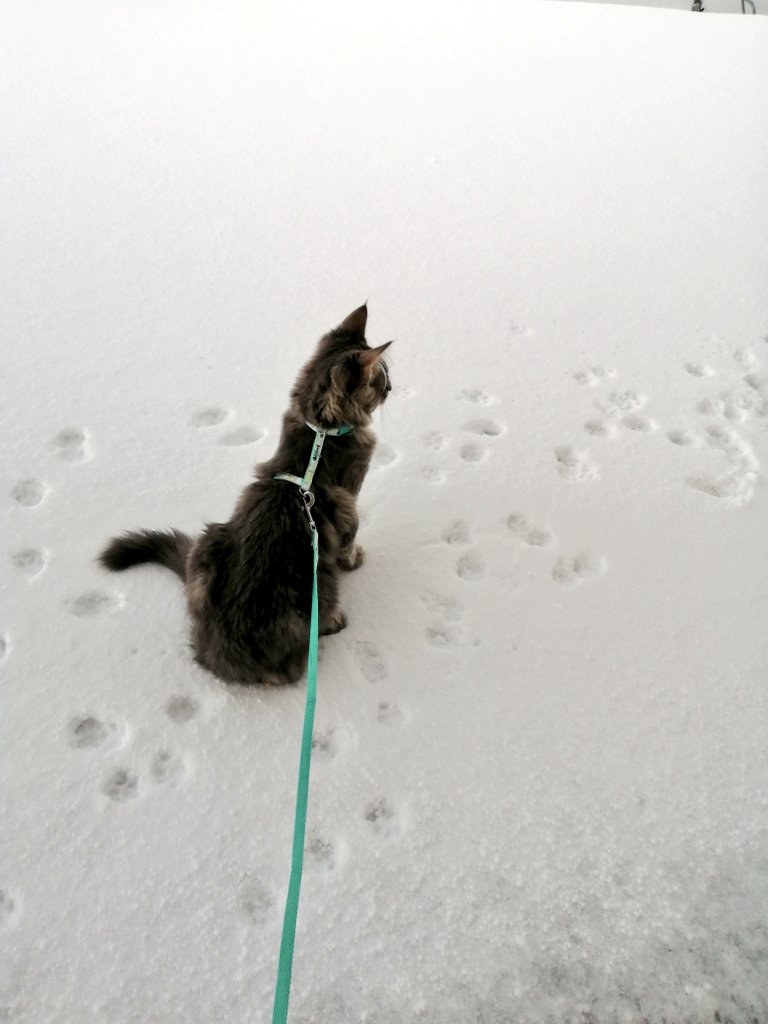 He was just wandering about and sitting on it. Only got curious when drops were falling from balcony above, I'll try get his snow chasing uploaded.. Snapchat orient it wrongly