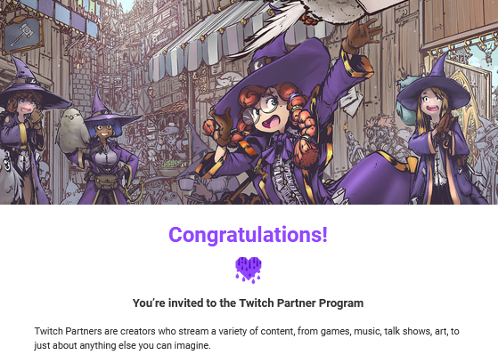 So this happened. I don't even have the words to say how happy I am right now - just thank you guys so much for the support and I can't believe we finally made it! Twitch Partner wooooooooooooo