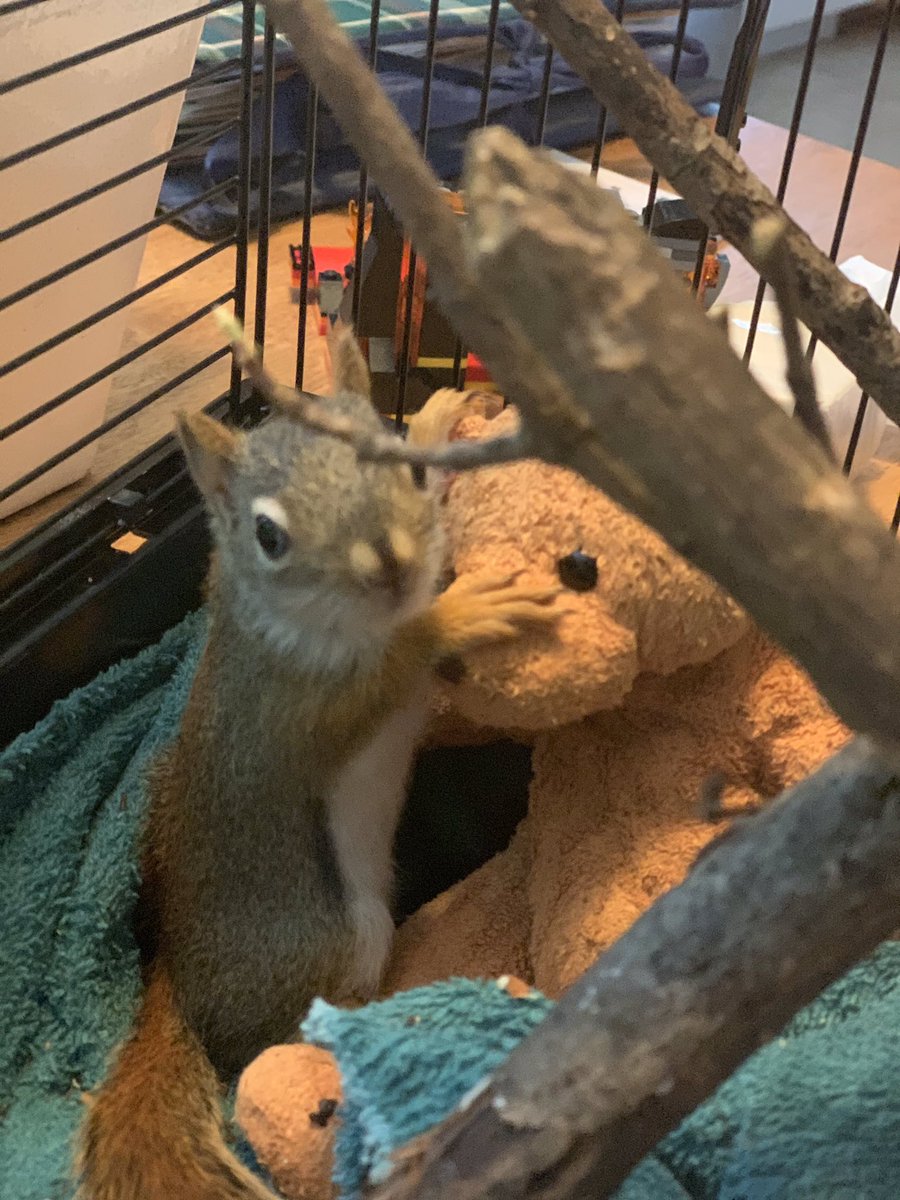 So @NinjaWife614 and NinjaScoot have been raising an abandoned baby squirrel.