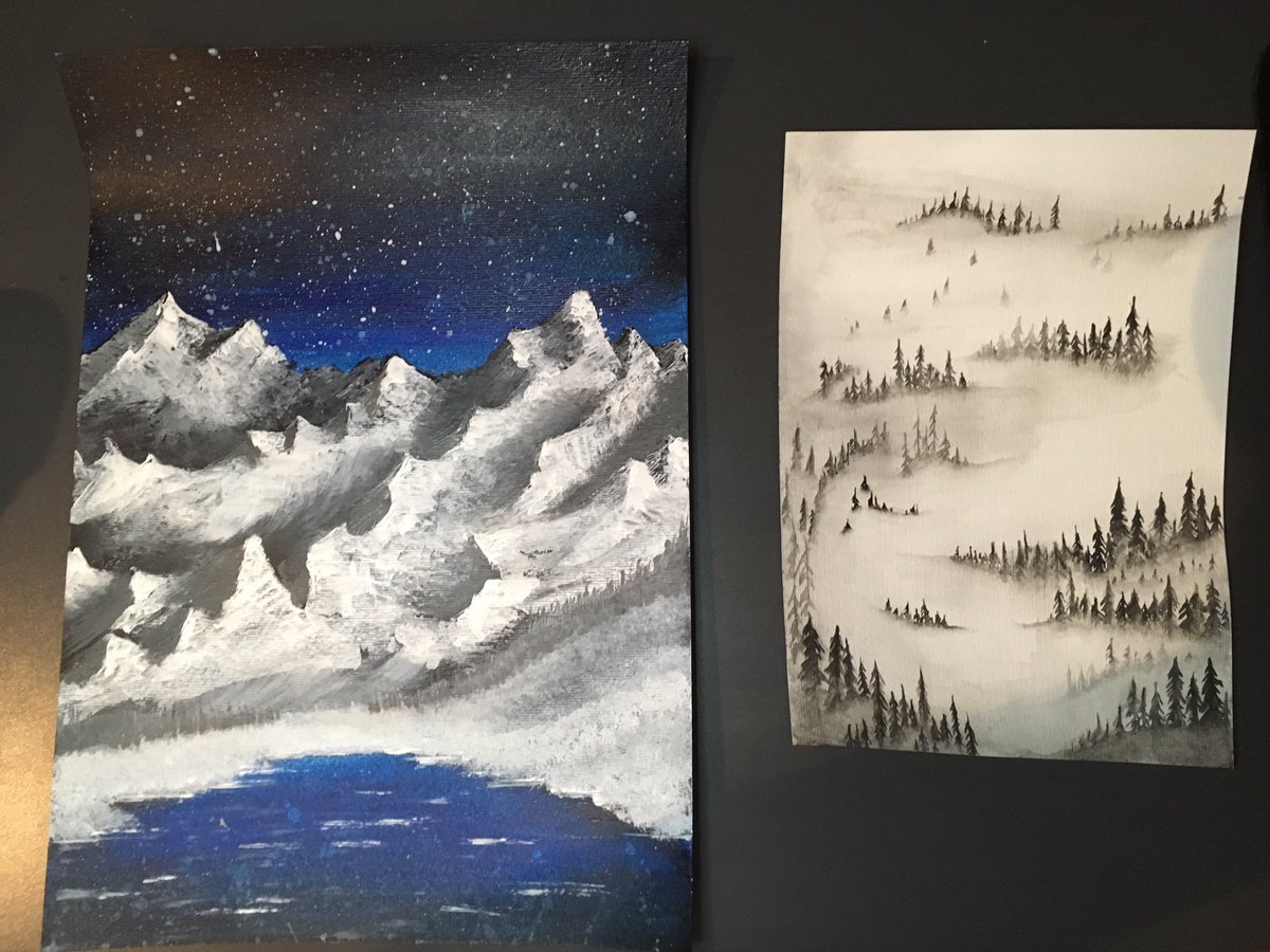 Tried smth new today. Still getting used to acrylics and using watercolours first time in years (right). Need more practice!pic.twitter.com/aVdRr3ihTh