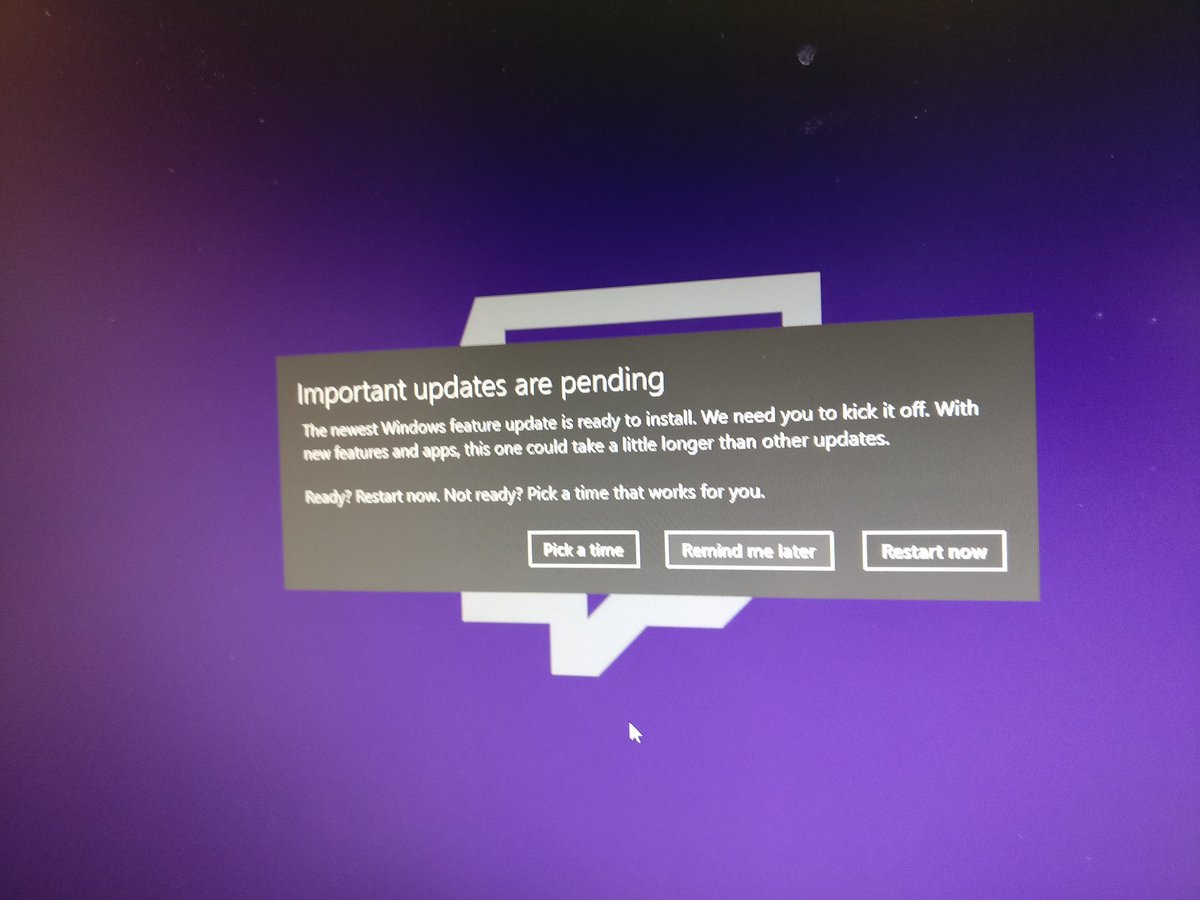 at least it didnt restart mid work when you pressed Remind me later. Mine did that, and all I thought was "why bother asking me then if you restarted anyway"