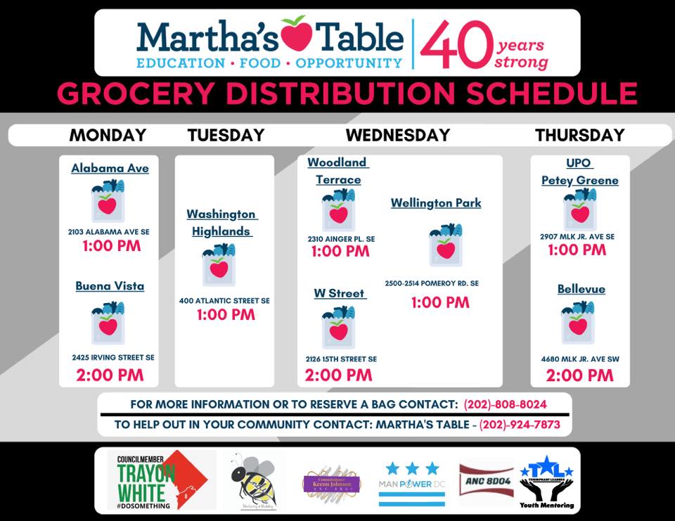 @MarthasTableorg, Ward 8 Councilmember@TrayonWhite, ManPower DC & partners as a distribution site for fresh produce. Please share widely so we can ensure residents have access to the food they need.#UPOinDC#DCValues#UPOinActionpic.twitter.com/3qGRrcggBr