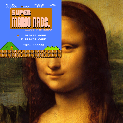 NES Remix contains an archive titled body_famicom.arc, which is programmed to display a scene showing the title screen of Super Mario Bros. The texture used is cropped however, and if you open the full image on a texture viewer, you'll see it's actually placed over the Mona Lisa.pic.twitter.com/zqyTzHmVOK