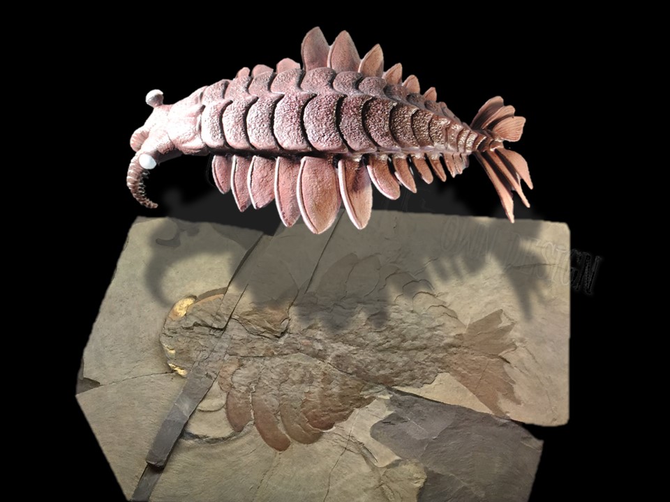 予約販売中の『アノマロカリス・カナデンシス2000』と 実化石を比較してみた。影付きバージョン・・
