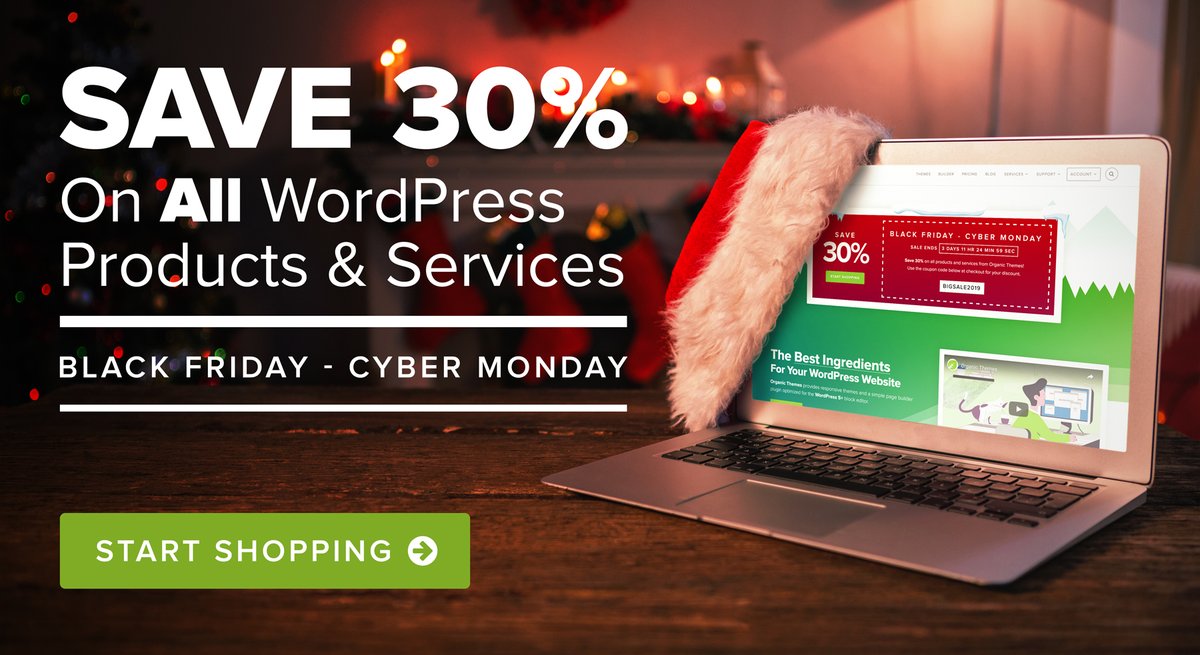 Looking for a unique gift for that techie web designer friend or family member? The Organic Themes Black Friday through Cyber Monday sales event is the perfect gift! Save 30% on all WordPress products and services! - https://mailchi.mp/organicthemes/black-friday-followup …pic.twitter.com/U2JRE45Ph5