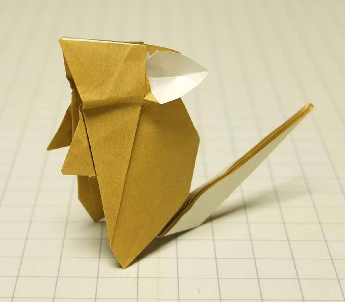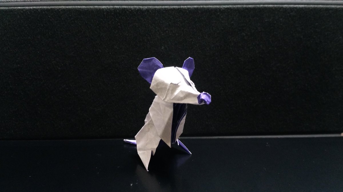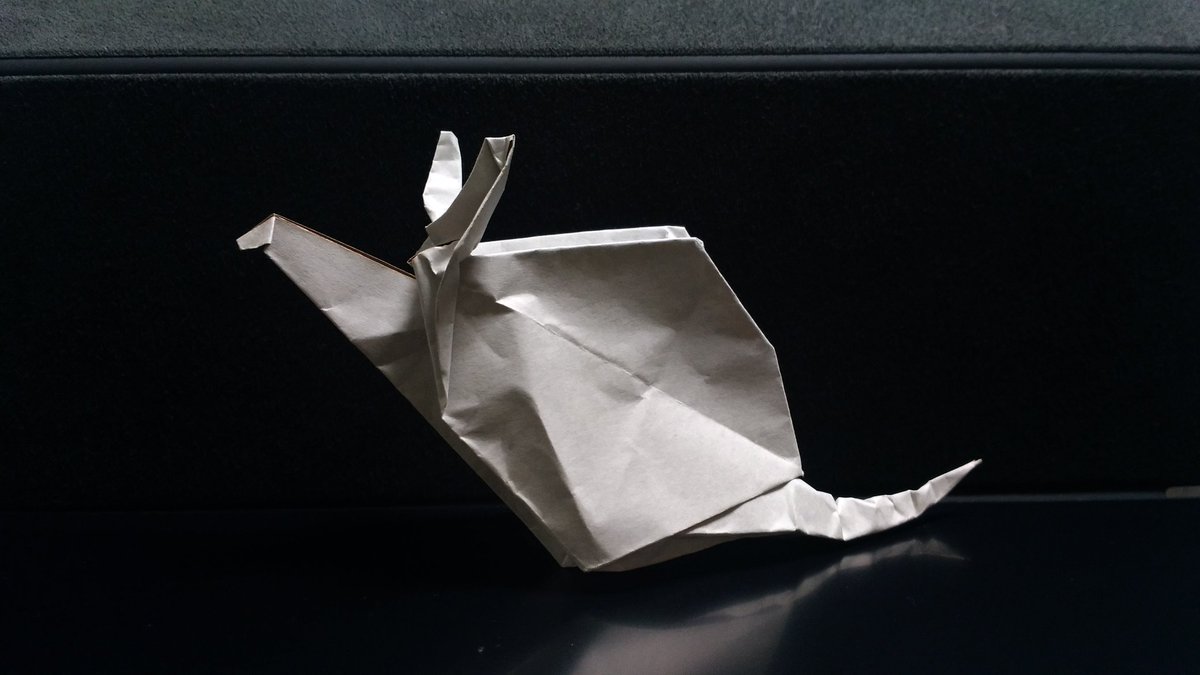 低地さんのお兄さんが即興で創作したというネズミに触発されて非対称配置で遊んでみた。展開図はおおまかな構成で写真の頭部は実際は観音からいじってる。展開図左下のカドをカド割りで前足にするpic.twitter.com/3szbyvZx0T