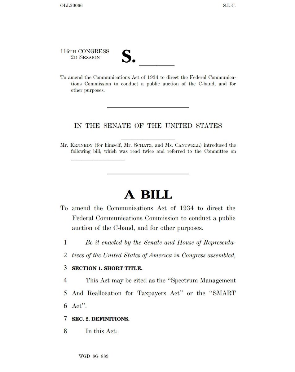 Money generated by the public auction of C-Band spectrum should go to American priorities, not bailing out foreign companies. The SMART Act will help shrink the national debt and get broadband to rural communities still handcuffed to dial-up internet.https://www.kennedy.senate.gov/public/press-releases?ID=1258E0AF-4362-41DF-8EDB-6EDFC6F383DA …