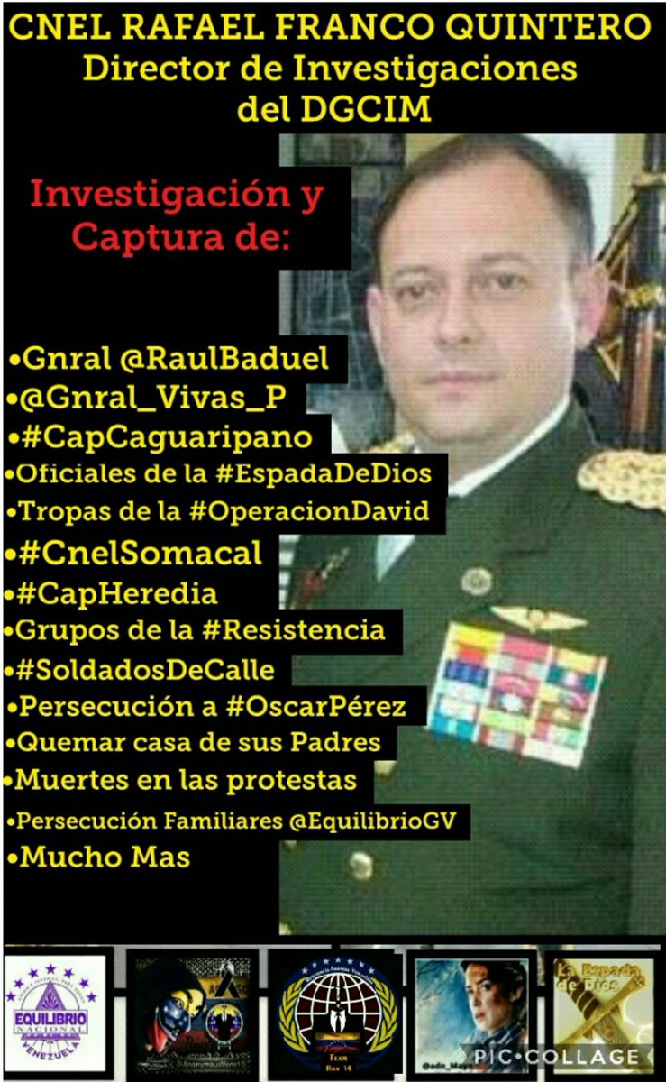 Por órdenes del general Hernández Dala y el coronel Franco Quintero directores del DGCIM, tienen detenidos a Ramón Fernando delgado, Douglas Pimentel, Héctor Pedrosa, dayana Santana y muchas otras personas que no pertenecen al movimiento sólo son familiares y amigos.pic.twitter.com/73WXqQ6Gul