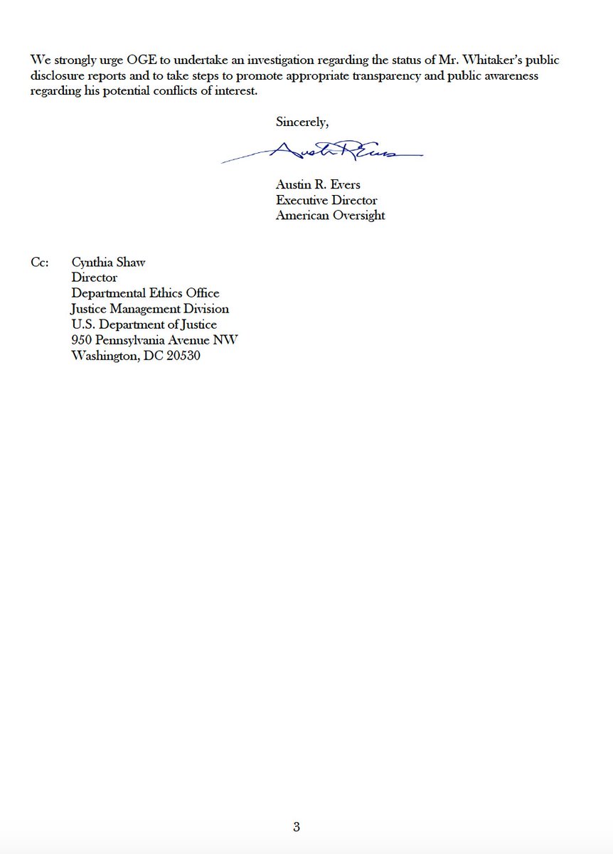 New Letter: Where are acting Attorney General Whitaker's financial disclosures? The public has a right to know: https://www.americanoversight.org/document/letter-to-oge-regarding-mathew-whitakers-lack-of-public-financial-disclosures …pic.twitter.com/BxJXln7PxI