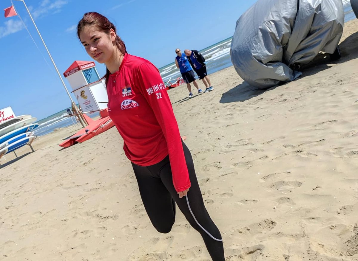 Odbojkašice Srbije odradile su nedeljni jutarnji trening na plaži u Riminiju.