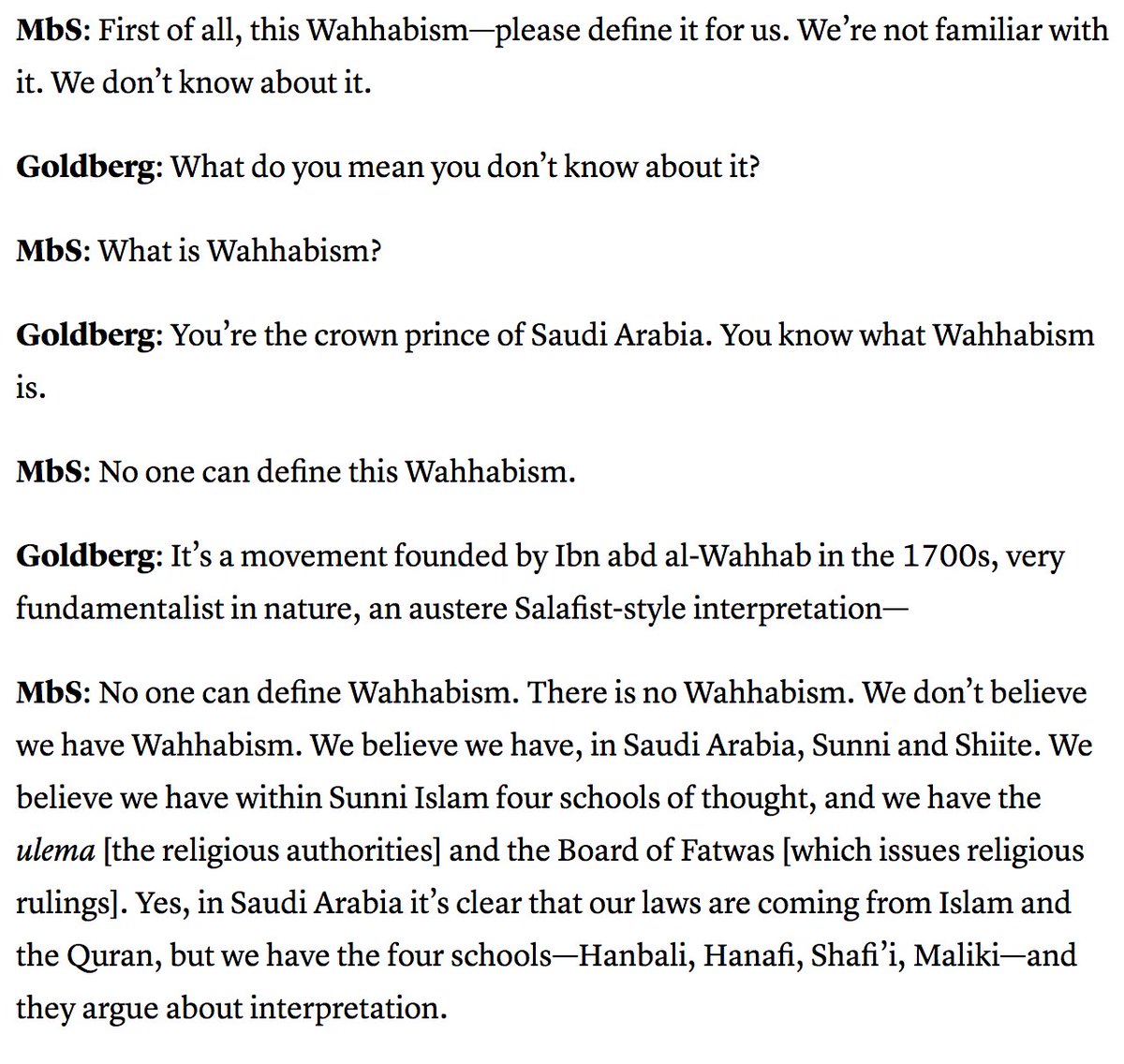Wow. This exchange. MBS: What is Wahhabism? Atlantic's