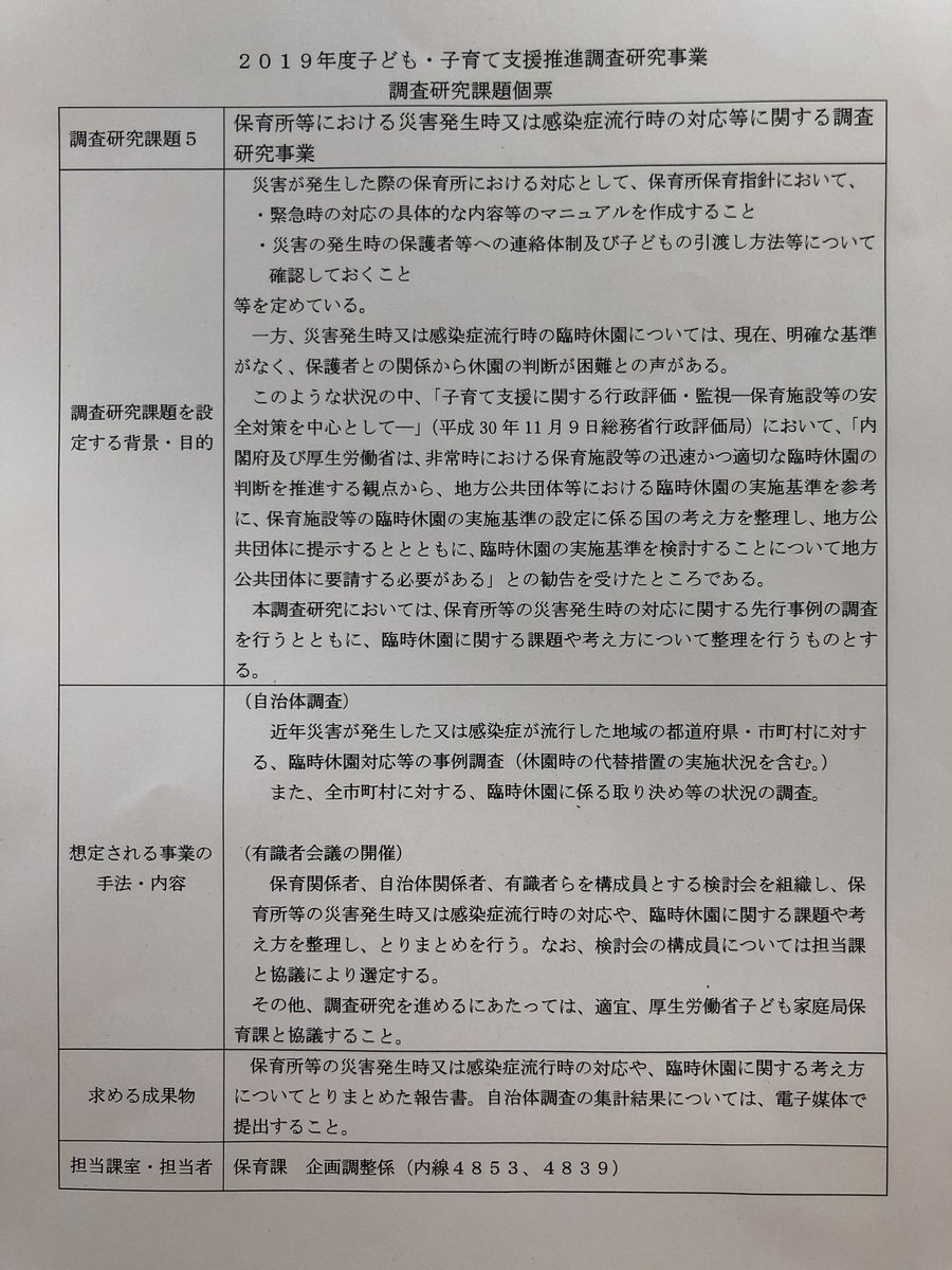 動きが早く素晴らしいですね。でも... 「個人的にはガイドラインだけではなく、保育所にも法令を何らか定めた方が良い気がします。」 ↑ 「個人的」と他人事のように言うのではなく,立法府に身を置く「議員」として作成下さい。法律を定めるのは行政ではなく立法のお仕事です。