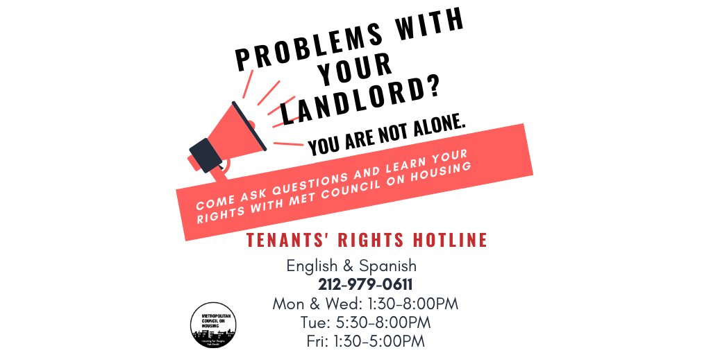 Insufficient heat? Broken appliance? Issues with your lease renewal? Our knowledgeable members are on the line until 8pm tonight to answer all your tenants' rights questions! Call now: 212-979-0611pic.twitter.com/TavFzMD05m