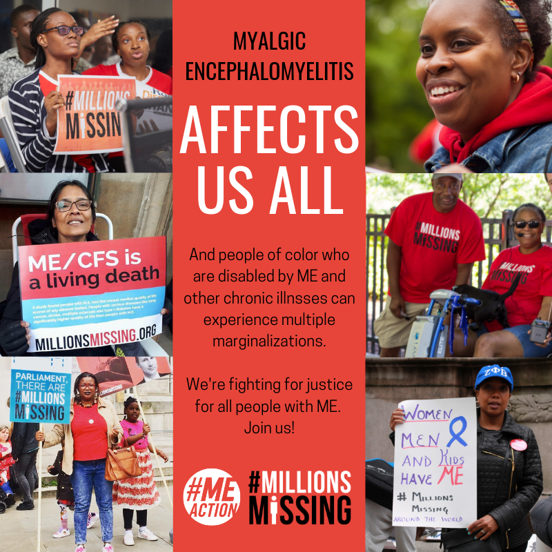 Science tells us ME affects men & women, young & old, and people of every race & ethnicity, yet those who are diagnosed are overwhelming white. It's a problem of medical education and healthcare access, for which communities of color are paying the HIGHEST price