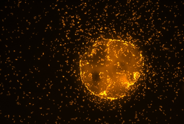 Here is a picture bacteria colonizing a chitin particle ... (credit to Julia Schwartzman, a brilliant postdoc in my lab)pic.twitter.com/t7jptnO9Vn