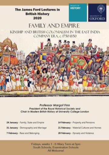 Tomorrow (24 Jan) at 5pm, the first of the History Faculty James Ford Lectures with Professor Margot Finn. Lecture One: Family, State & Empire.