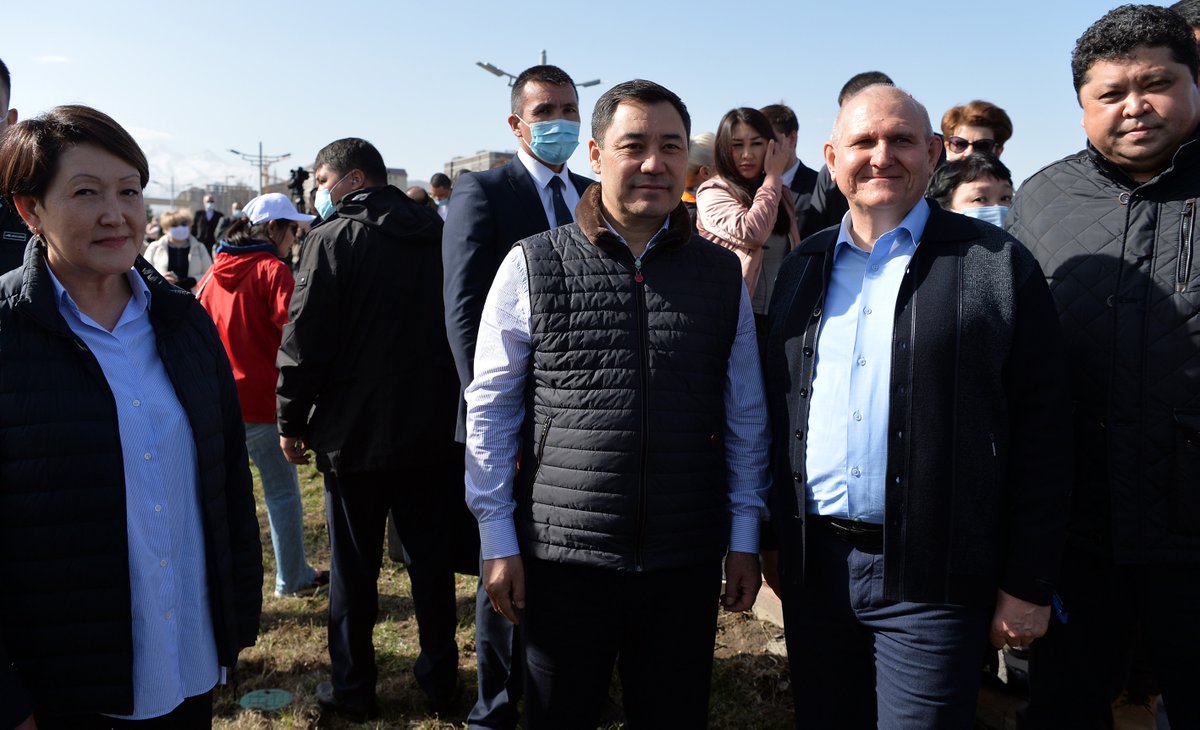 #Kyrgyzstan H.E. Mr.Sadyr Zhaparov w/h the diplomatic corps planted trees in support of increased women’s participation in elections.