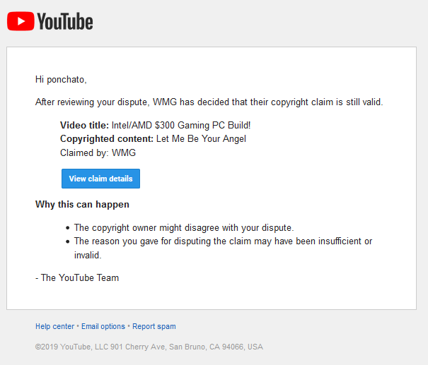 Hey @warnermusic , your YouTube copyright team just made a claim against my video - which does not include your content at all - and then denied my appeal. Again: the song you guys claimed was not in my video at all. Any help?pic.twitter.com/Qt8rhb3zzh