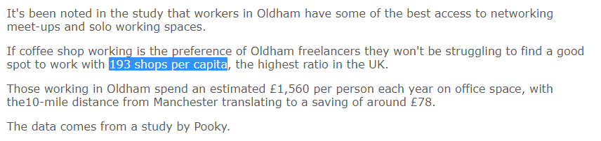 Oldham is a great place to freelance because there are 193 coffee shops per capita... Wait, what? https://www.oldham-chronicle.co.uk/news-features/140/business-news/132497/oldham-comes-second-in-the-list-of-best-places-for-freelancers …pic.twitter.com/5uiofthgRf