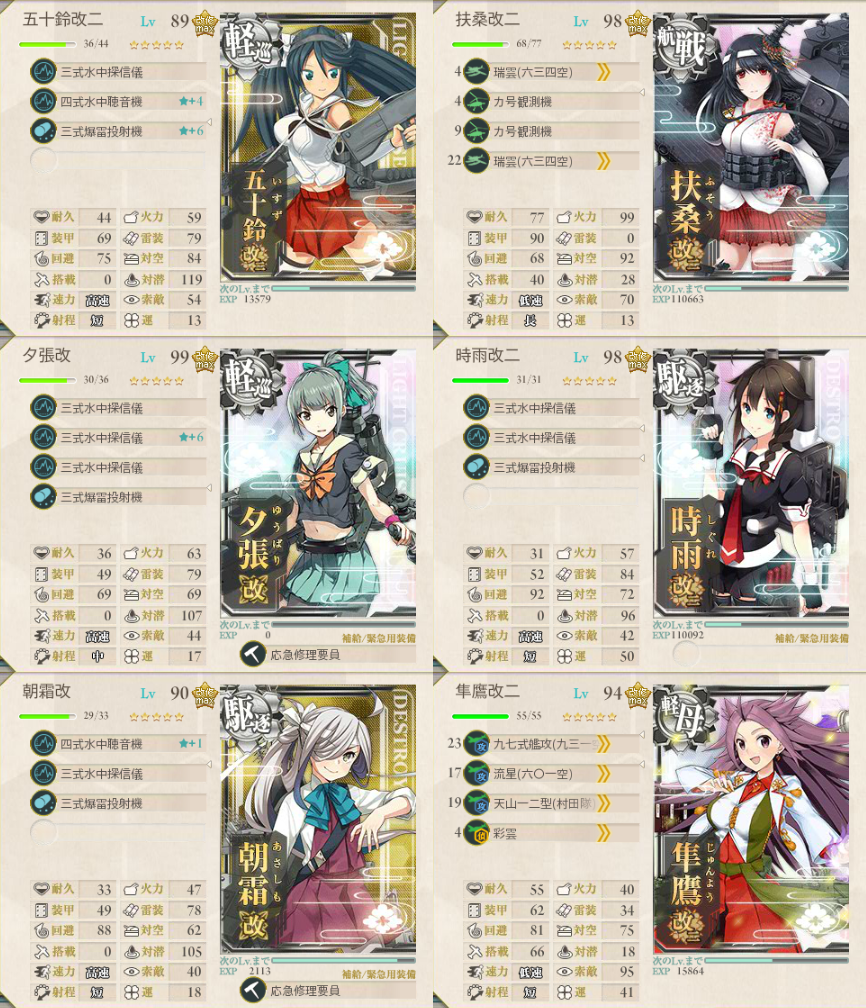 E1甲クリアしました~。ラスダンが硬くて同航戦でも倒せなかったので、Iマス夜戦装備で3回A勝利したらボスが柔らかくなり、対潜装備に戻してボス→同航戦で無事終了。水母棲姫一度も倒してないのでギミックは補給なのかな? pic.twitter.com/ssgXJJfiNz