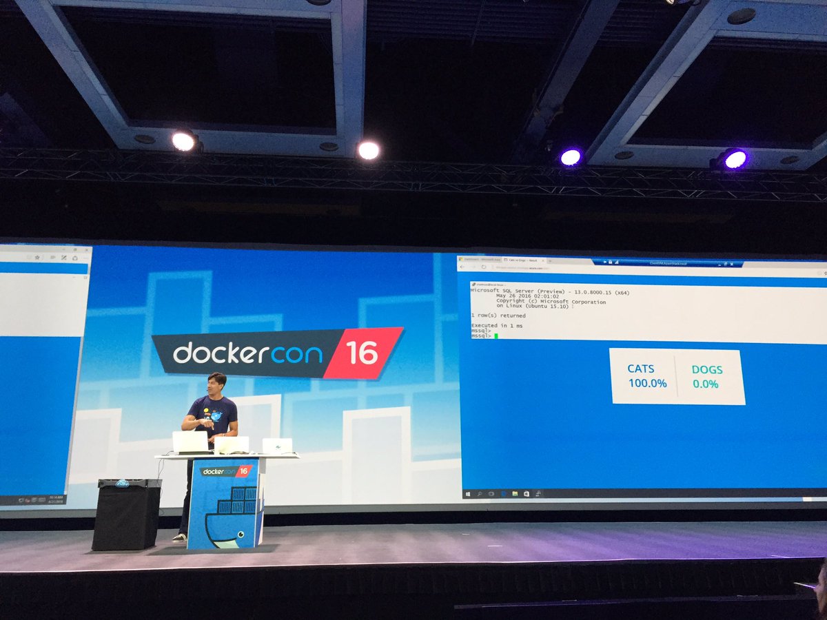 "That's MS SQL Server running on Ubuntu on Docker Swarm on Docker Datacenter on @Azure"@markrussinovich#dockerconpic.twitter.com/7xLZFMRIch