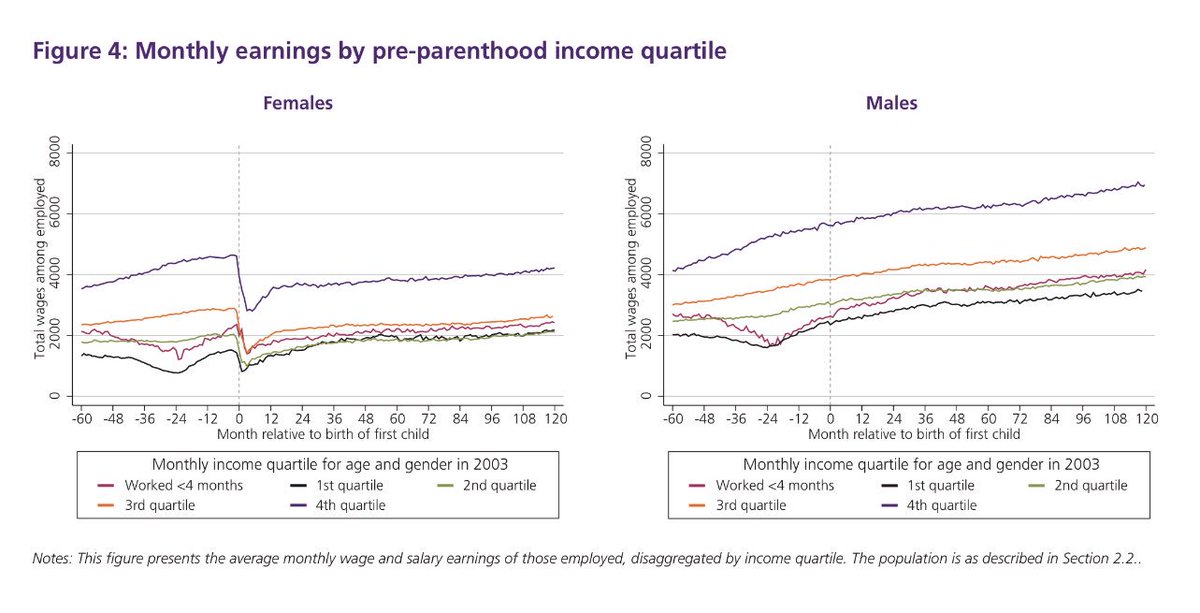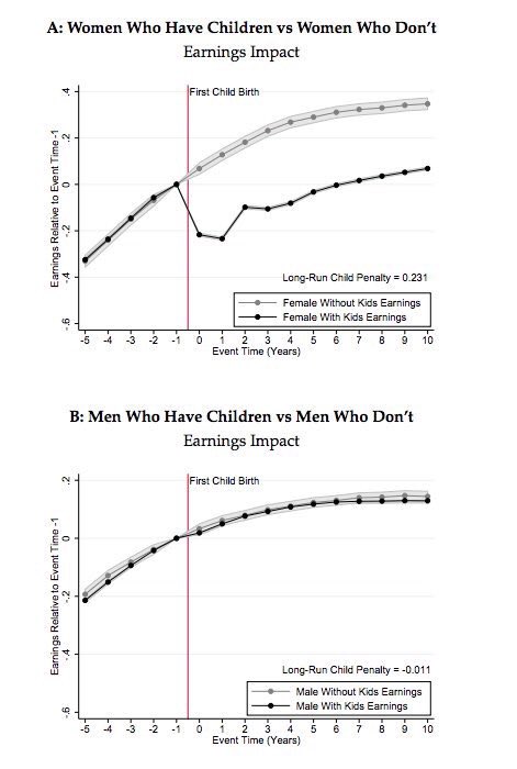Why is this a surprise? If you grow a person, you can't work as much! Men can't take time off as they are able to earn and keep everything going. Stop trying to make things what they are NOT. Women have always been they primary care giver, and men have always been the labourer.