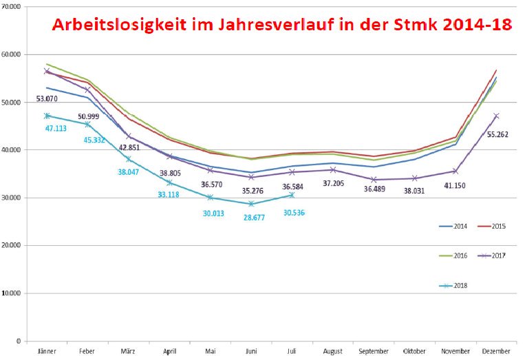Die Arbeitslosigkeit unterliegt in der Stmk erheblichen saisonalen Schwankungen. Jährlich gleiches Musterpic.twitter.com/2Jl7ivj7Ng