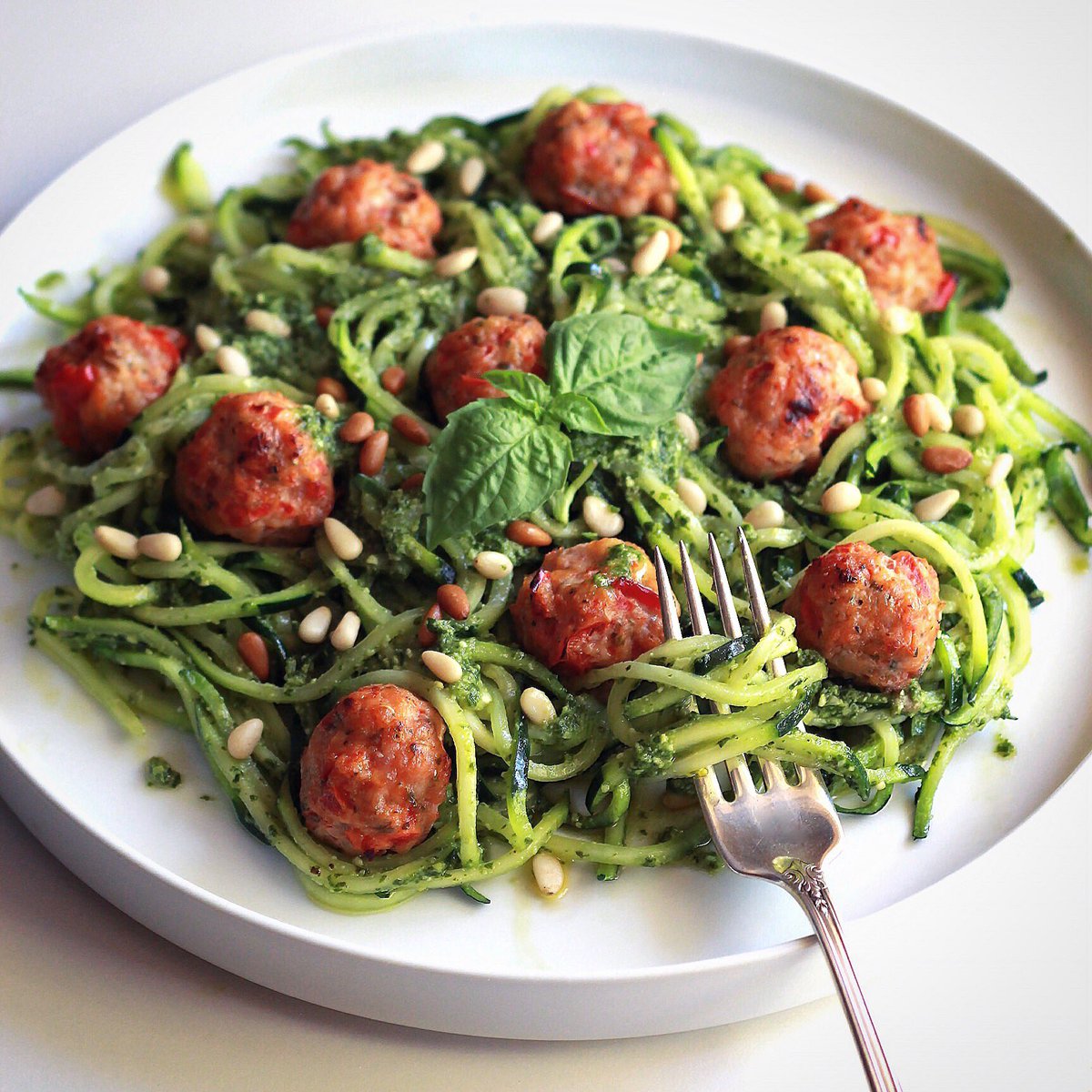 #zoodles w/ mini chicken bacon meatballs, Recipe