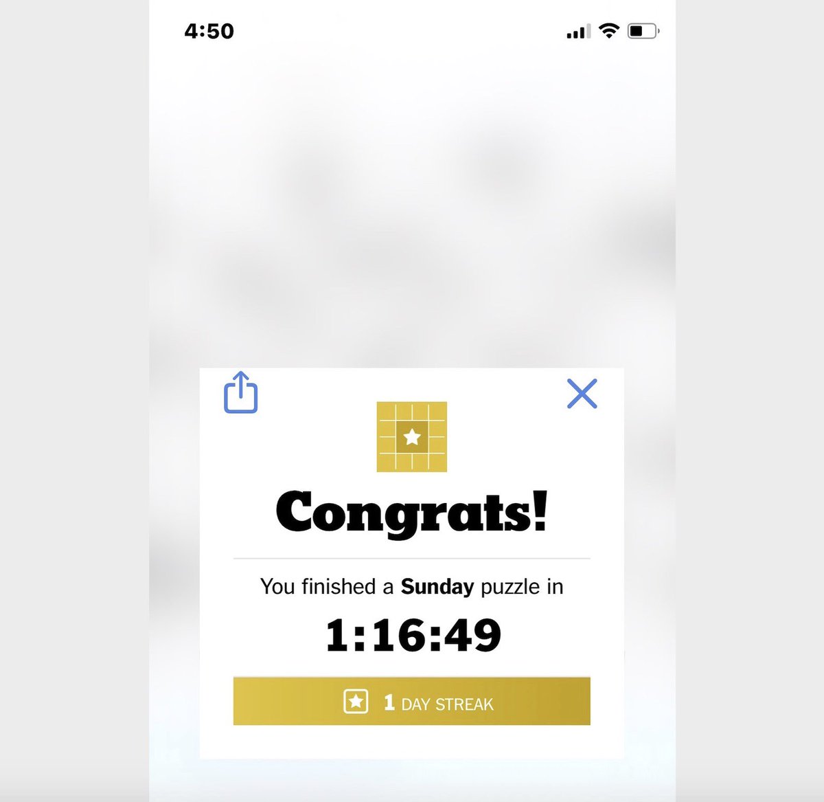 I can’t. I’m done. Now I have to actually tackle and finish The New York fucking Times Sunday crossword puzzle. Look Ma! I made it!