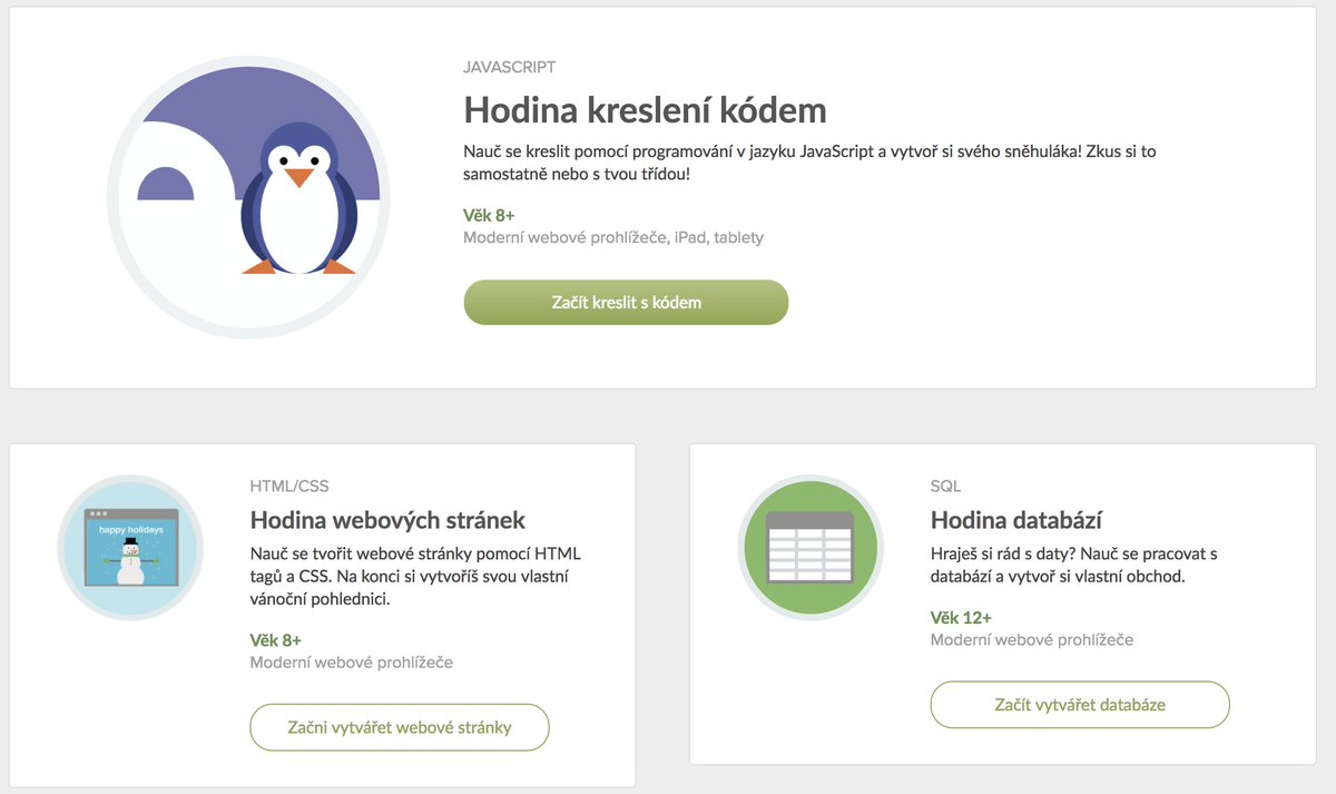 #HourOfCode tutorials are fully translated and dubbed to Czech, thanks to the hard work of team@KhanovaSkola! JS, HTML, and SQL, all in Czech.