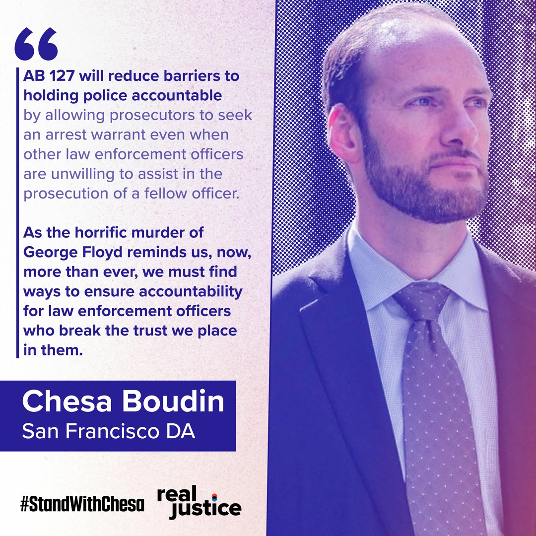 🚨 BREAKING: #AB127 was signed into law. This bill introduced by @sydneykamlager and co-sponsored by SF DA @ChesaBoudin will reduce barriers to holding cops accountable. We need everyone to #StandWithChesa so he can keep leading on accountability: https://standwithchesa.com/ pic.twitter.com/OSy1HSznma