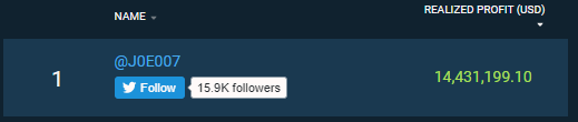 Can we guess what @J0E007's February realized profit will be? Previous monthly realized: August - $1.46 million September - $8.6 million October - $2.67 million November - $14.4 million December - $6 million January - $6 million February - #1 unrealized profit at $7.5 millionpic.twitter.com/EDY6f9d70y