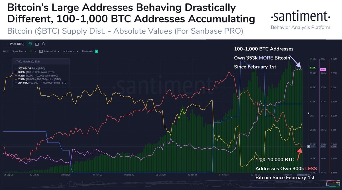 Big Bitcoin whales are accumulating, small whales are selling.
