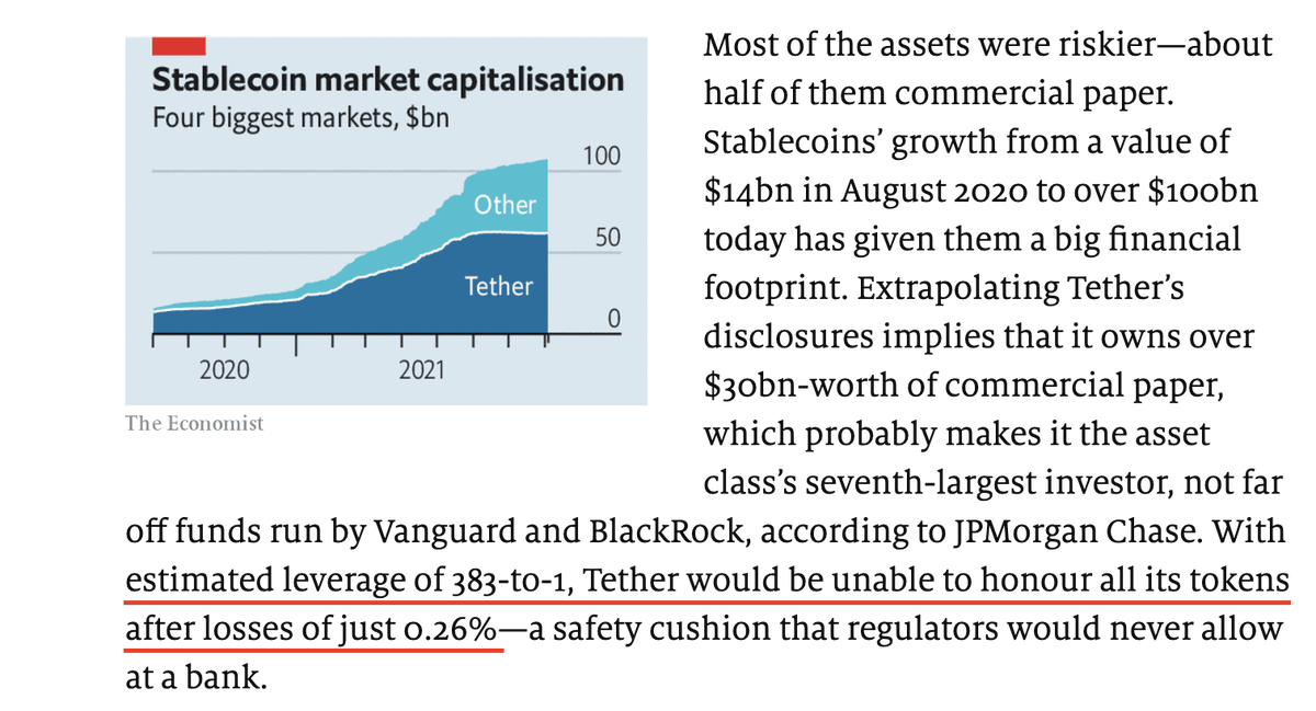 The Economist: "How dare #Tether have full backing, 162M in additional assets, not have the need to raise capital at random valuations. This is pure madness!!!!!!!!! What a bunch of hippies!!!" Also from my quick calcs this article is (🐴/🍕) correct.https://twitter.com/nic__carter/status/1423442285027528714 …