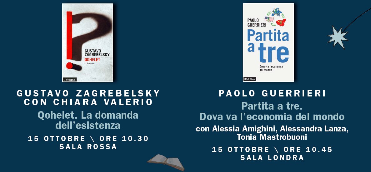 #14ottobre al 18 Il Mulino vi aspetta tutti al@SalonedelLibro: stand U21, pad. Oval. Qui sotto trovate il nostro programma di incontri. La prenotazione dei posti non è obbligatoria, ma consigliata. Potete farla su https://saltopiu.salonelibro.it .#salto#SalTo21pic.twitter.com/mZynPuhnRn