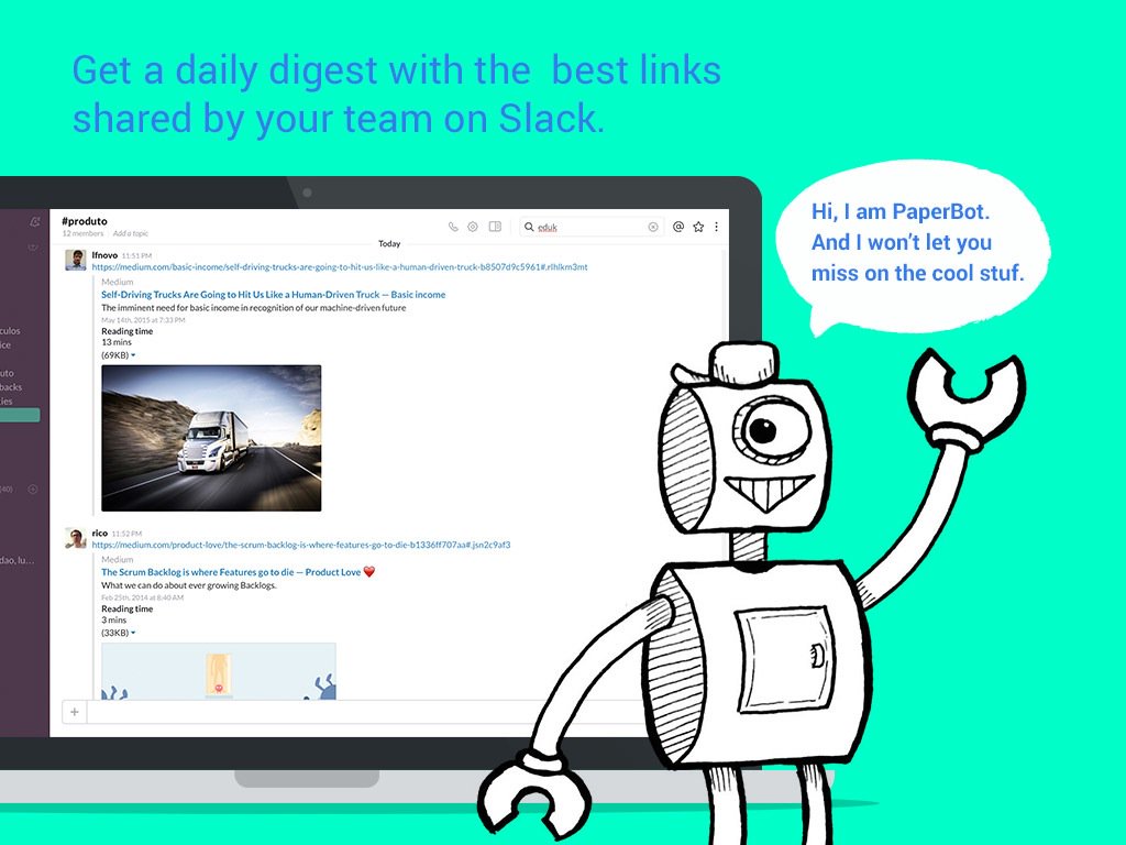 The PaperBot: A daily digest with all the cool stuff your team posts on Slack pic.twitter.com/e4pgWu2sHR http://bit.ly/1pQNyUD via