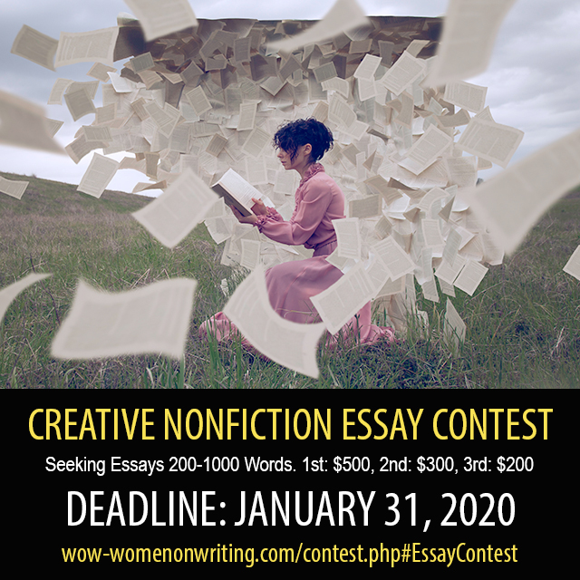 Ladies with a story, here is a nonfiction essay contest taking submissions this month. Deadline: January 31st Word count: anywhere between 200 and 1000 Prizes: several, including $500 first prize