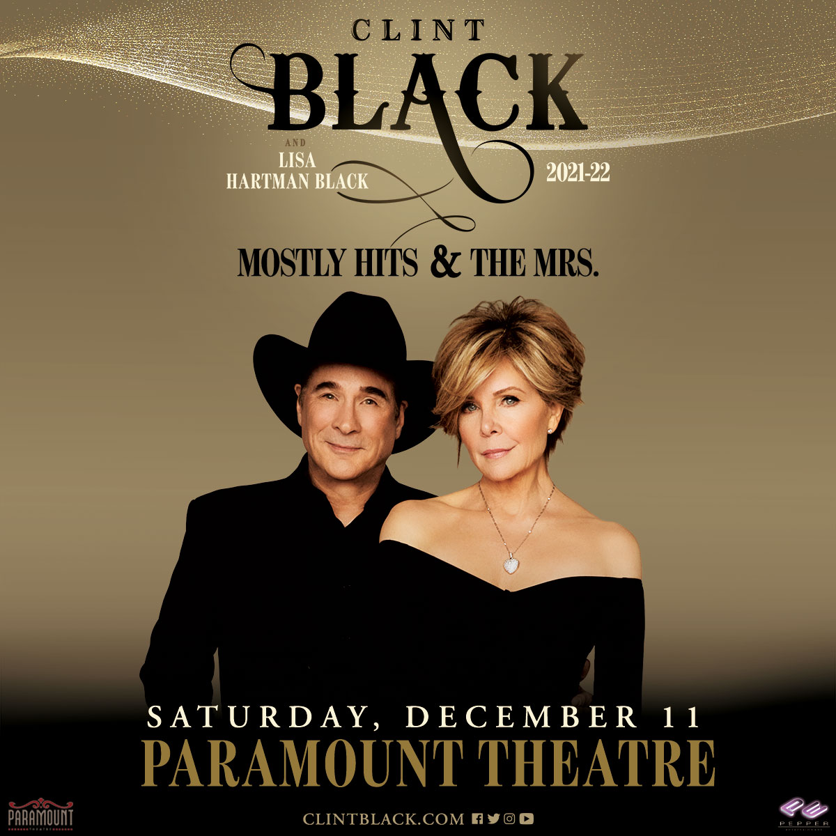 PRE-SALE STARTS NOW | Clint Black and Lisa Hartman Black are coming to the Paramount Theatre Saturday, December 11th! Get your tickets NOW before they go on-sale with code HITS