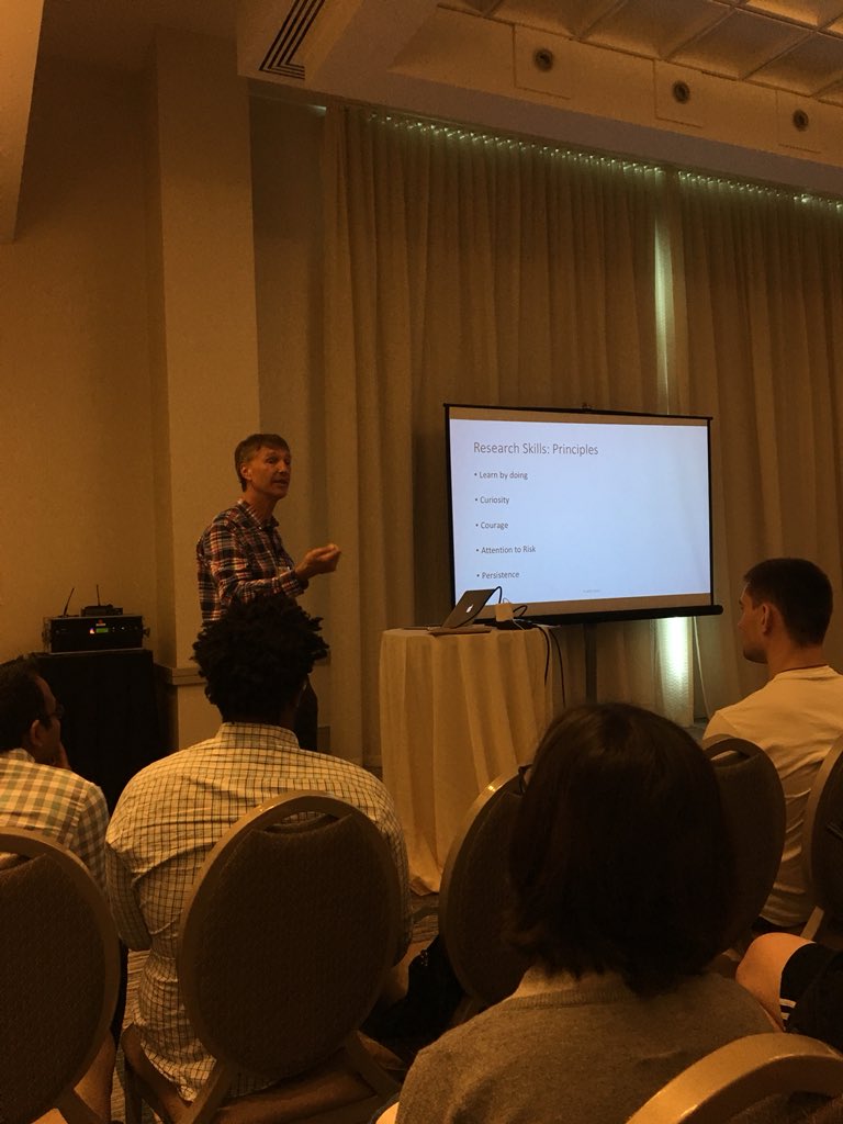 #PLMW. Little kids are great at research - very curious, persistent, and unafraid of failure. And formal education actually selects *against* research skills.#pldi2018pic.twitter.com/uR97yA0MxZ