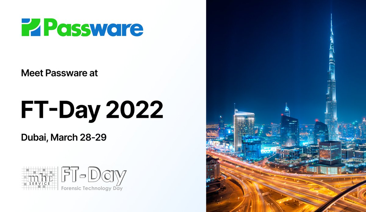 Travel resumed! Meet Passware at FT-Day 2022 in Dubai, March 28-29. Free registration at: https://bit.ly/pw-ftd22 pic.twitter.com/5q3c5g7t07