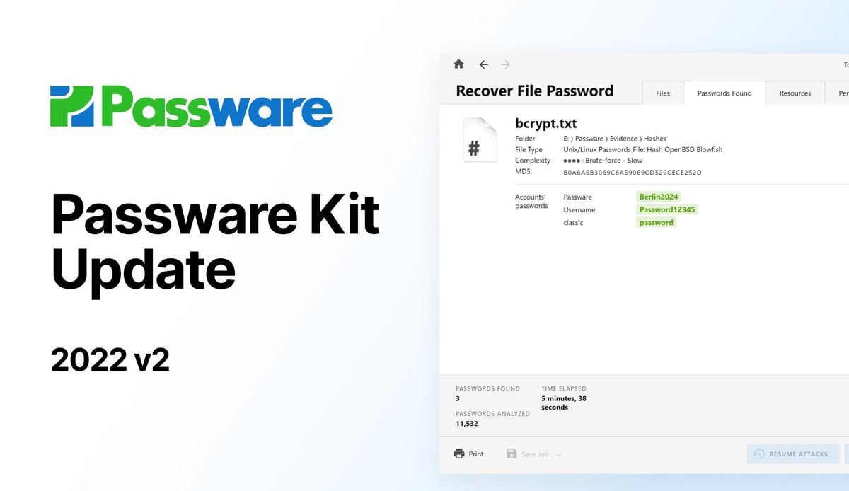 Passware Kit 2022v2 launched with support for #bcrypt hashes and#OpenCL acceleration on macOS!