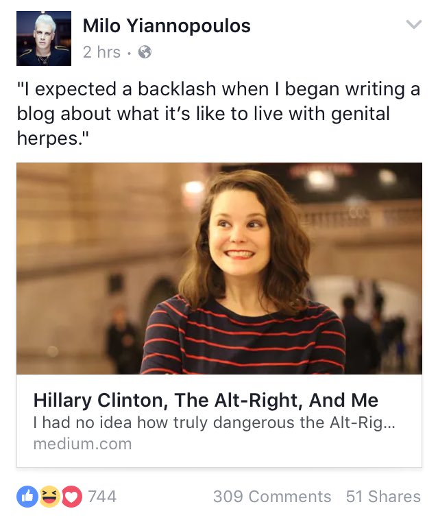 My article on Hillary and the Alt-Right just had its best traffic day ever. Thanks, Milo!! #sograteful #blessed