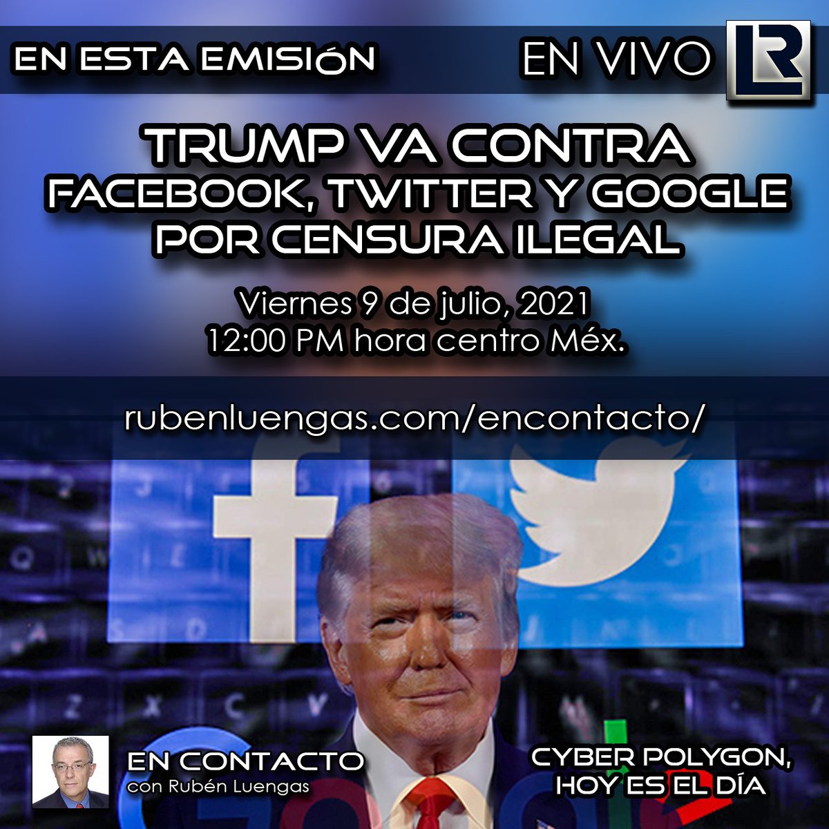 Hoy 12:00 pm. | Trump va contra Facebook, Twitter y Google por censura ilegal | Sigue nuestra emisión en este enlace: http://rubenluengas.com/encontacto/ *.*pic.twitter.com/V9sIpySz4l