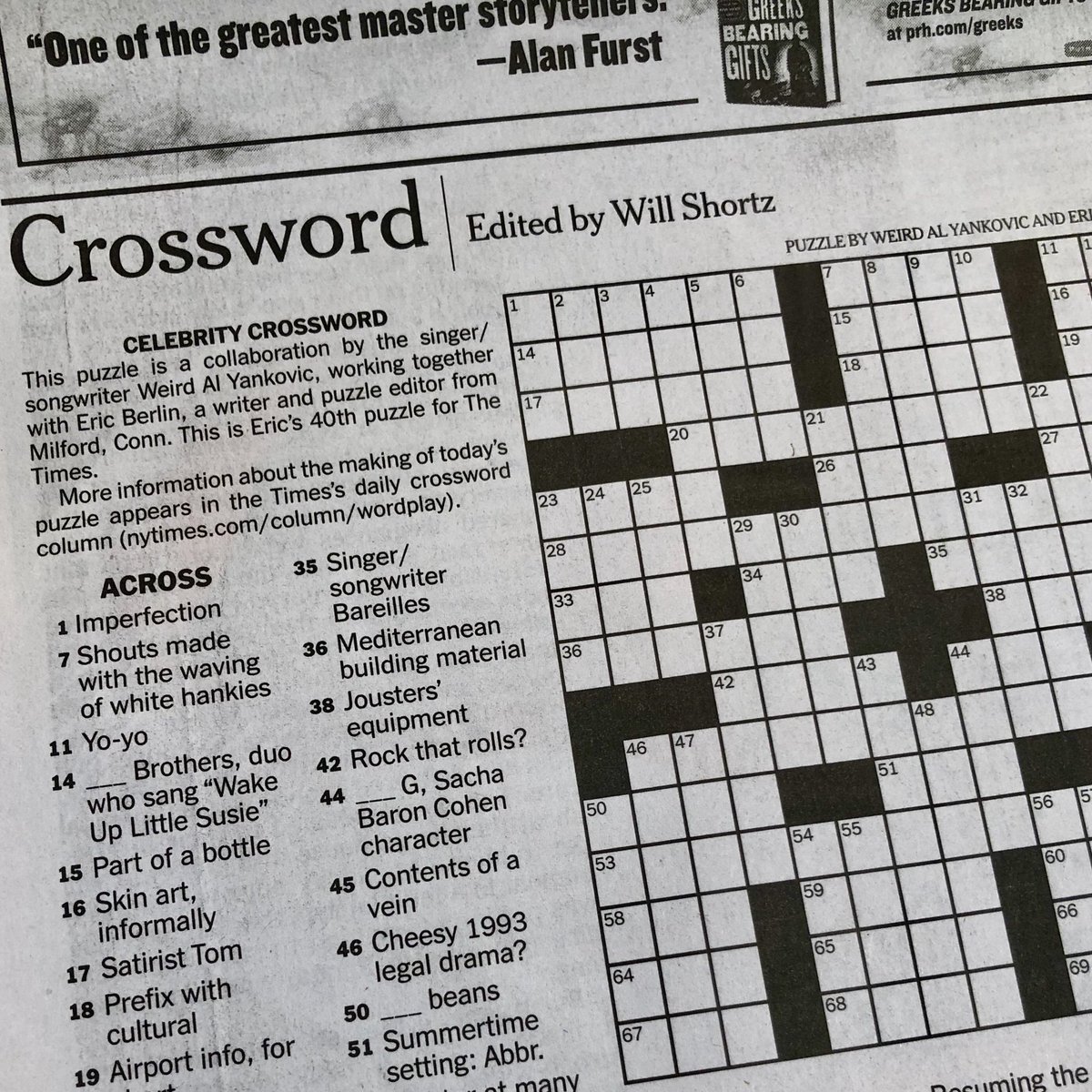 @NYTimes crossword puzzle created by Weird Al Yankovic.pic.twitter.com/JSOGm8NV9o