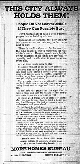 (from the Seattle "More Homes Bureau" campaign of 1918, which was considered successful.)