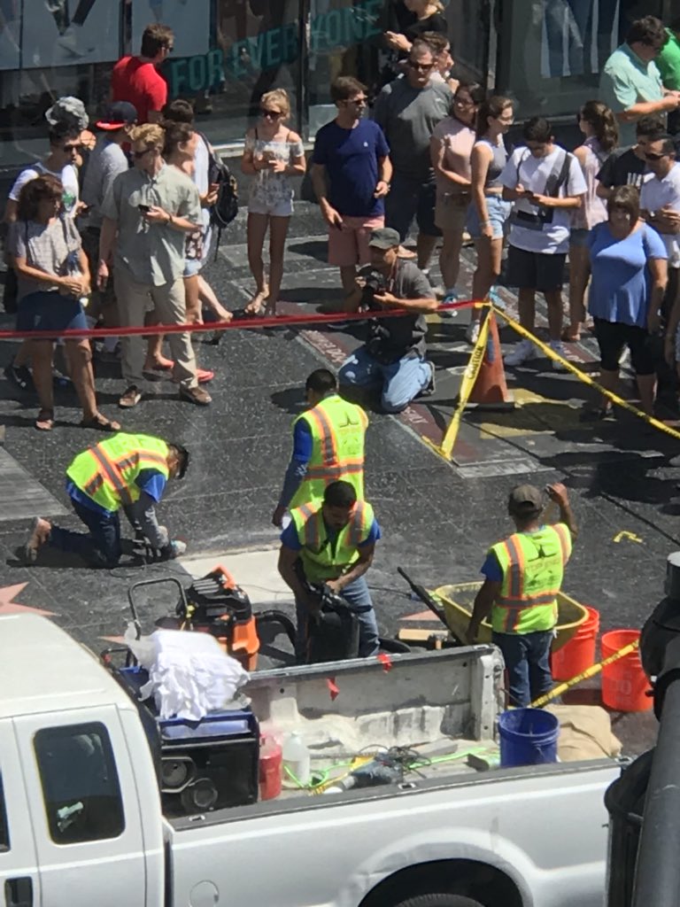 @realDonaldTrump vandalized Hollywood Walk Of Fame star is underway right outside my office window. Who SAYS he doesn’t create new jobs?pic.twitter.com/45gy9I8c8r