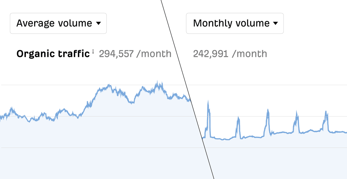 NEW: Organic traffic graph now has two modes! The "Monthly search volume" mode will show: 1. If there's any seasonality to your target's search traffic 2. If the popularity of keywords they rank for is growing The "Average search volume" mode is for general SEO visibility.pic.twitter.com/bVrIPzUTmj