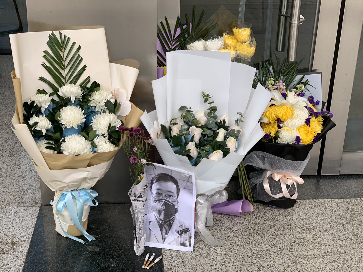 A small memorial for Dr. Li Wenliang at the branch of Wuhan Central Hospital in Houhu where he died.pic.twitter.com/DBUUEbIfIX