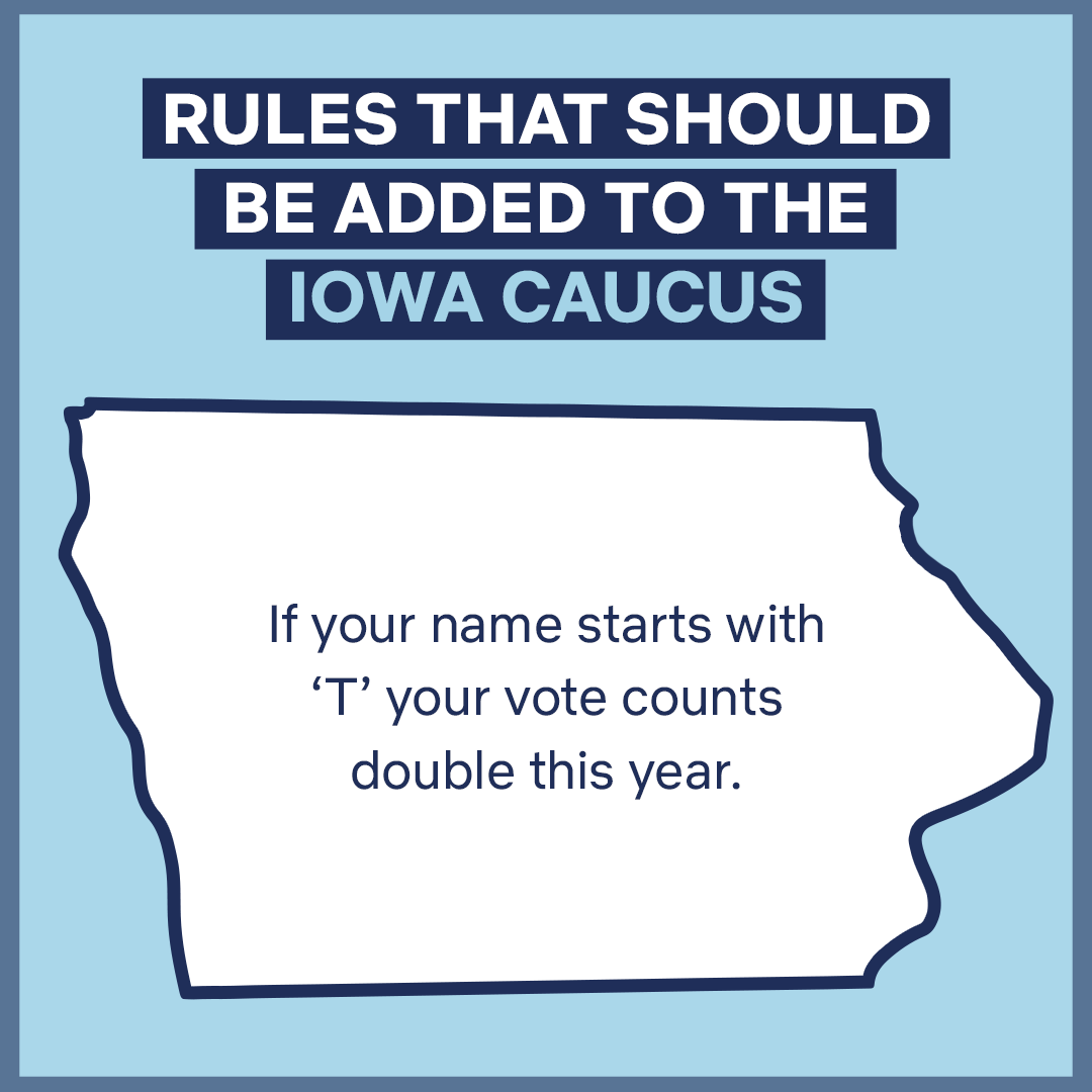 Just some ideas to make the Iowa caucus more fun for the voters.pic.twitter.com/Vcm6RGmvOT